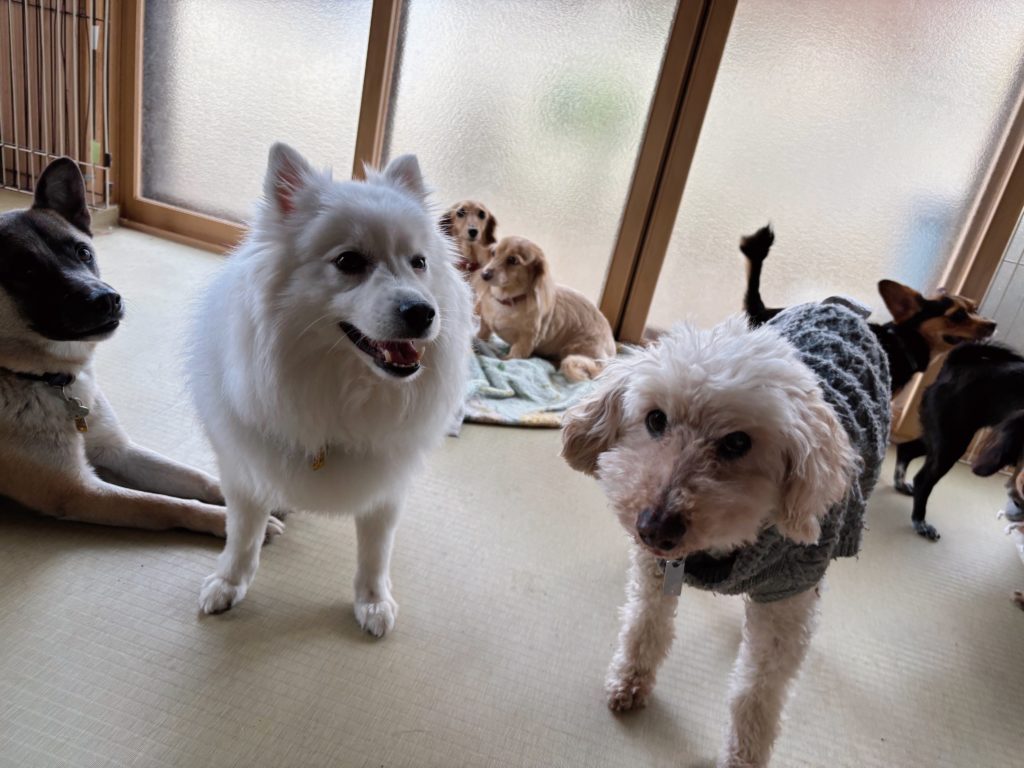 ベテランのスピッツ&ミックスちゃん兄弟、シニア長のトイプーさん、窓辺には軟体系女子のダックス姉妹ちゃんも。いつもの顔馴染みのメンバーさんが集まり、ワイワイ人間に甘えたり、身体を横にしてお昼寝したり。いつもと変わらぬ幸せな光景を見せてくれています。