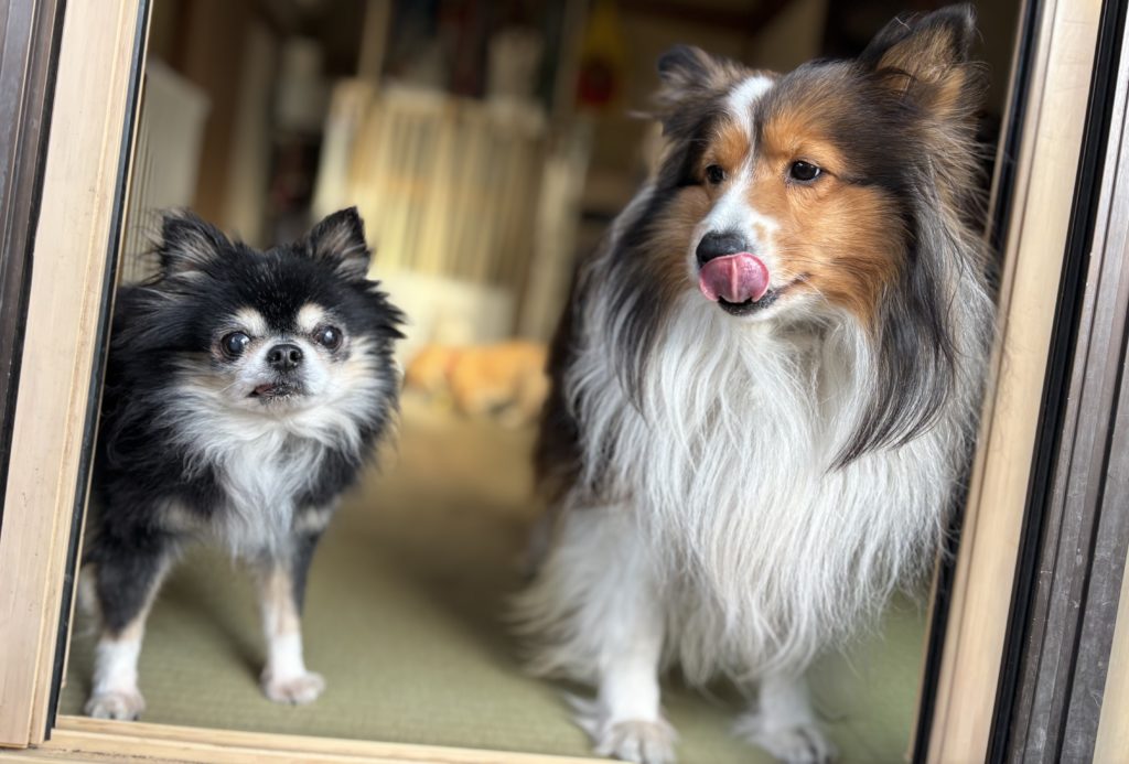 窓辺にキュートな姿が。シニアチワワちゃんとシェルティーちゃんのまったりコンビさんが、半身浴をしていました。お外から流れてくる風に、お鼻をクンクンさせながら、シェルティーちゃんはペロっとピンクの舌ものぞかせて。おふたりの、穏やかで柔らかい空気感が写真からも伝わってきます。
