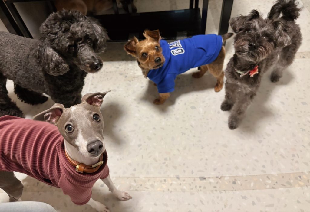 最近仲間入りしてくれたニューフェイスの子たち+通い組ベテランのプードルちゃん。それぞれはじめましての顔合わせだったので、まずはお互いどんな子かな?といろいろな情報交換を。イタグレちゃんとシュナちゃんはお若いチームなので、動きも機敏で興味津々。ヨーキーちゃんも何度か足を運んできてくれて、少しづつ環境にも慣れてくれているところ。それぞれにいろんな状況がある中、みんな上手に過ごしてくれています。