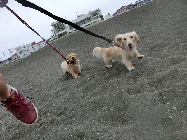 ユルリズムなふたりですが、広ーい砂浜を見たらテンションが上がったみたい。