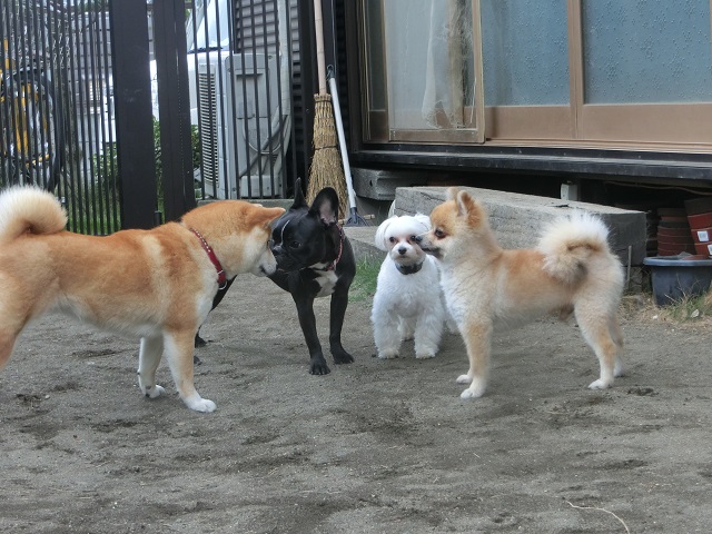 〈わんこたちの憩いの場、湘南茅ヶ崎のペットホテル〉緊急会議 店舗ブログ 2015.06.19 「で?どうする?」「う~ん。じゃ僕が先にやる。」「私も。」「いいよ。」 何の会議だかは定かではありません(笑)お庭で追いかけっこをして遊んでいたのですが、突如集まり まして、緊急会議が開かれました。きれいにみんな集まったので、見ていて、本当に面白い瞬間でした。 きっと人間にはわからないいろんな事情があるのでしょうね。 今日も仲間たちと遊んだり会議したり?毎日いろんな一面が見られます。