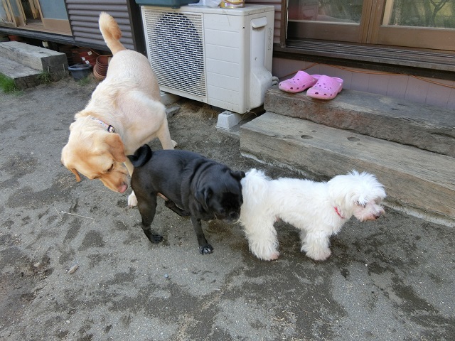 <出会いがたくさん、湘南茅ヶ崎のペットホテル>まずは 店舗ブログ 2015.07.14 見事につながりました!わんこたちのファーストコンタクトはおしりクンクンから。 先頭のマルチーズくんはどんな心境なのでしょうか…よもや後ろに連なっているとは思っていない 感じですね。こうしていろんな情報を交換し合っている間は、人間の出番はまったくありません。 静かに見守るのみ!そうしてだんだんと関係を築いていくんですよね。 湘南のペットホテル、本日もいろんな出会いの予感。まずはあいさつから始めましょー。