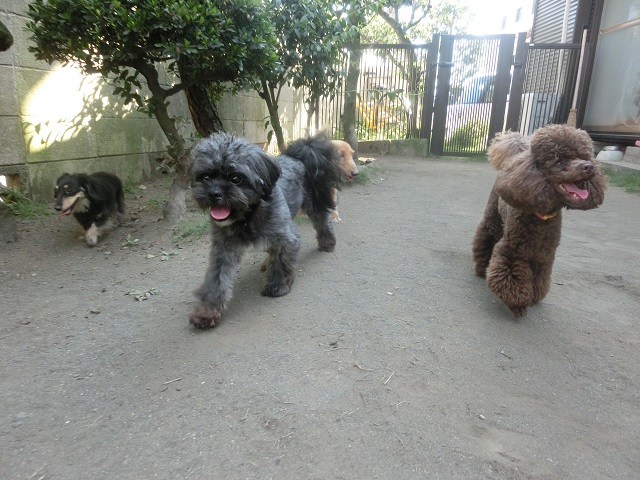 <お庭で遊ぼう、湘南茅ヶ崎のペットホテル>どこへ 店舗ブログ 2015.07.28 みんな笑顔でどこへ行く?午後のお庭は日陰になるので、みんなでリフレッシュタイム。 ボールで遊んだり、スタッフとじゃれ合ったり。気ままな時間を過ごします。 チョコのトイプーくんは今しがた疾走したばかりで(笑)ハイテンションがみんなにも 伝わったのかもしれませんね。楽しい空気はみんなでいただきましょー! 湘南のペットホテル、毎日いろんな子たちとのステキな交流が、わんこたちを笑顔にさせてくれます。
