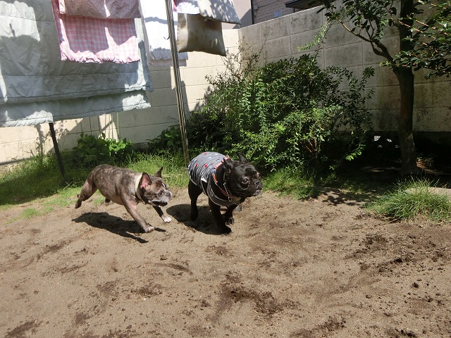 「行くぞーーー!」「待てーーーっ!」このシルバーウイークで初対面のフレンチブルドックのふたりです。