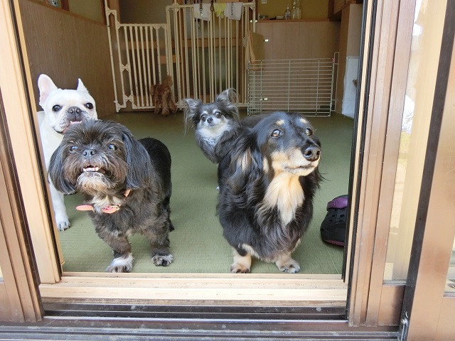 <わんこたちの憩いの場、湘南茅ヶ崎のペットホテル>選択 店舗ブログ 2015.09.24 みんなそろって、お庭の様子をうかがっております。出てみようか、それともお部屋にいようか… お外は元気っ子たちがはしゃいでいるので、少し勇気がいるし…でも… それぞれに考えていることは違うかもしれませんが、とにかく真剣なのは間違いなさそう(^^) 毎日は”選択”の連続でできているんですよね。 湘南のペットホテル、今日も仲間たちとのんびりゆったりの時間を一緒に過ごします。