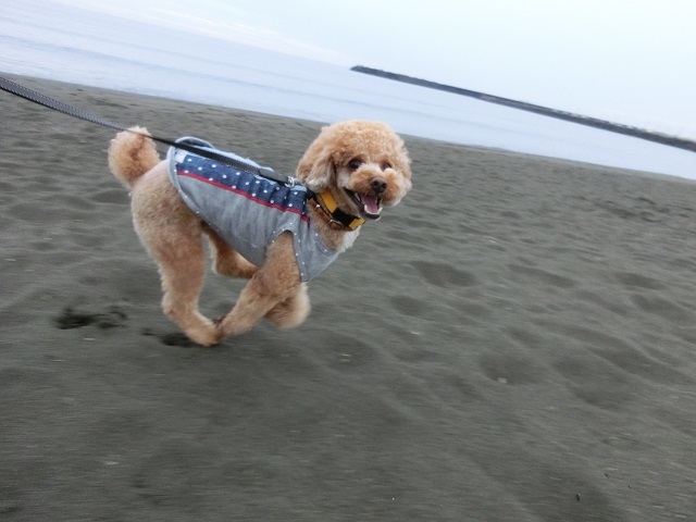 以前は、凸凹の砂浜で、足をとられて上手に走れない時もあったのですが・・・