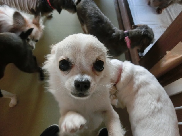 まんまあるおめめがとってもキュートなチワワくん。いろんな子たちの中で最初は少し