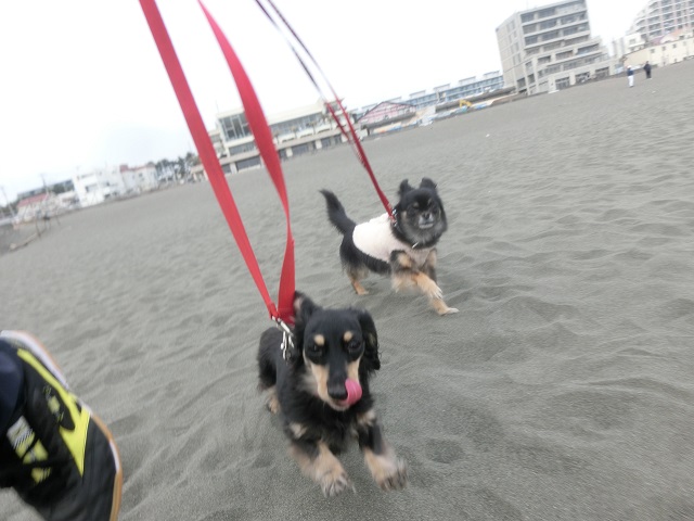 人間から見ても広い砂浜、小さいわんこたちからしたら、もっと大きく広ーく見えてるんだろうなあ。
