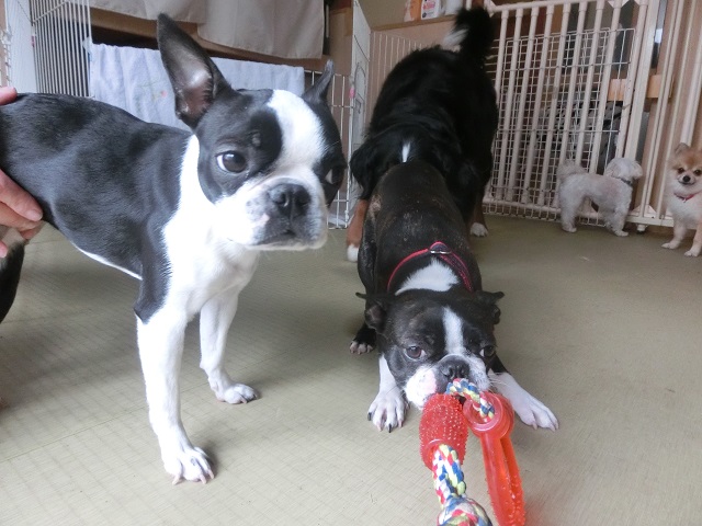 先輩です。パピーちゃんのこの漠然とした表情が何とも言えない!ボストンちゃんならではの