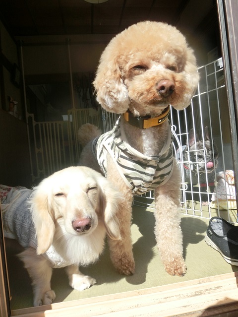 日中の陽射しがすっかり春めいて、わんこたちもお外で過ごす時間が増えてきました。