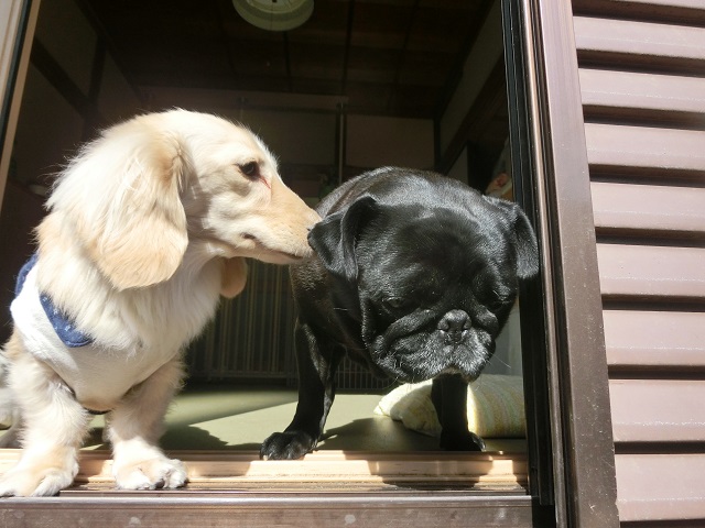 とっても可愛い&微笑ましいふたり。朝の窓辺で日向ぼっこをしながら内緒話?