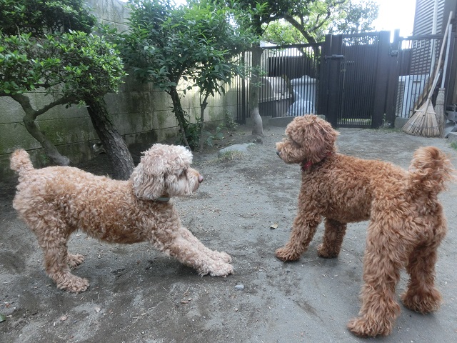 トイプーちゃんの方はまだ1歳未満のやんちゃ盛り。いろんな子に興味津々で、遊ぼうと誘ったり