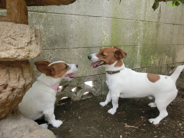 すっかり意気投合したジャックちゃんコンビ。お庭をすごいスピードで縦横無尽に駆け回って