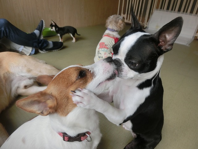 何度も会ううちすっかり姉妹のようになったジャックちゃんとボストンちゃん。