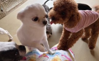 湘南のペットホテル、今日はまた梅雨空。雨が降る前にお外へ出て運動しておきましょー。