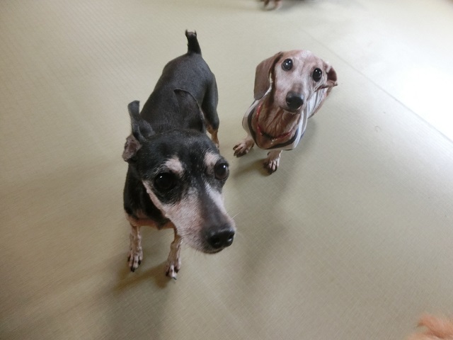 御年14歳のミニピンちゃんとダックスちゃんのシニアチーム。ごはんもモリモリ食べて