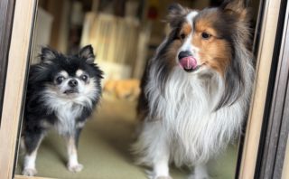 日陰になったお庭でリフレッシュタイム。体高が低い子たちは地面が近く、暑さを感じやすいので、
