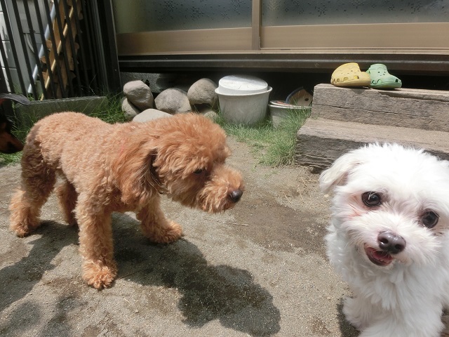 長期組のマルチーズちゃんは、もうすっかりわんこのうちのペースで、のーんびり自由気まま。