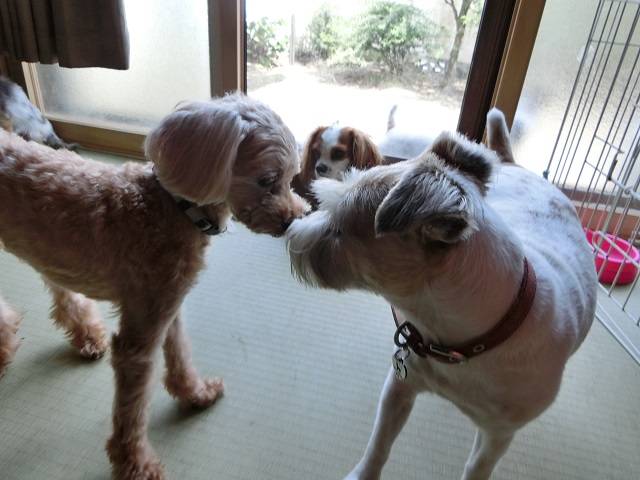 お互い同じ空気だな、と悟ったのか(笑)だんだん近づいてくんくんあいさつできていました。