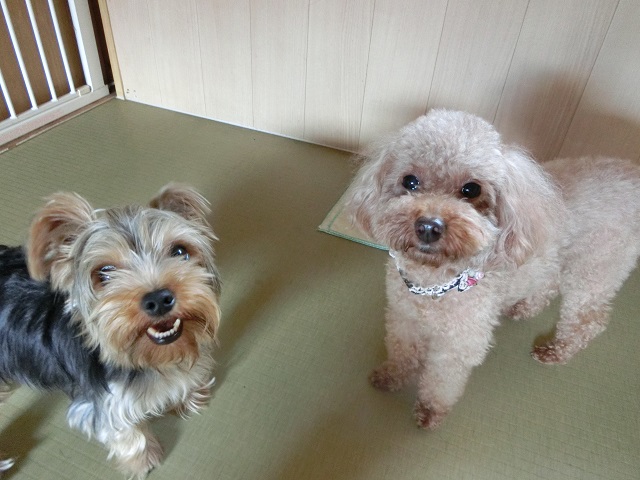 ひとときです。初めて来たときは緊張していたトイプーちゃんも、今ではすっかりほかの子たちと