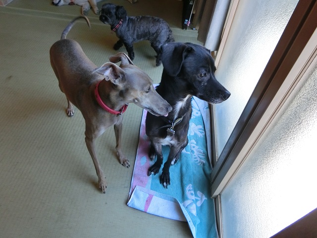 とっても落ち着いているMixちゃんと、やんちゃなイタグレちゃんの、絶妙なツーショット。