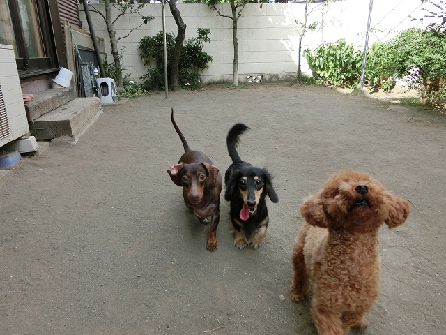 やんちゃな笑顔が輝いてる!一番左の子は最近長期組の仲間入りしたダックスちゃん。来てまだ数日間ですが、