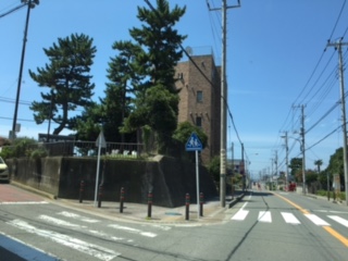 ●鉄砲通りの茅ヶ崎駅方面から、「中海岸二丁目」交差点を越えて、消防署の手前(公園の角)を左折し、坂を少し上ります。