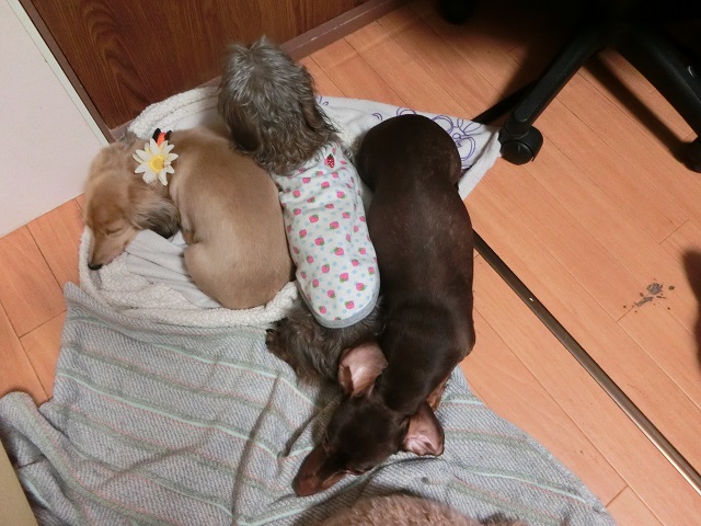ダックスパズル。絶妙なはまり具合ですね(笑)体と体をくっつけて寝ると、お互いの息遣いとか