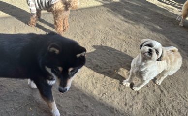 「ちょっと間を失礼。」「あ、どうぞ。」シーズーちゃんおふたりの間を、ミックスちゃんがちょうど通るところ。ついでにクンクン上手にごあいさつもできて、のんびりムードもいっぱい。なにせ、みなさん慣れっこさん...