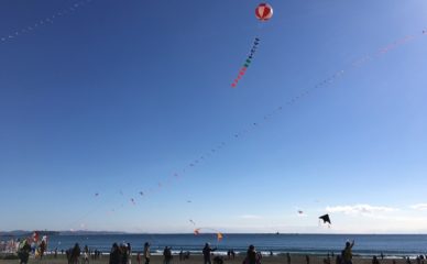 湘南の四季 <茅ヶ崎海岸の凧揚げ大会>たこたこ上がれ! 「たこたこ上がれ!」毎年恒例の駅伝大会と同時に、凧揚げ大会が開催されていました。思い思いの色どり鮮やかな凧たちが、天気の良い美しい冬空に舞っていました。近くでは、ライブも行われ、すっかり駅伝を応援して... 2018.01.05 湘南の四季